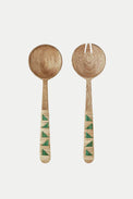 - Serve your salads in style with this set of two salad servers crafted from rich mango wood, complemented by bamboo handles accented in green and natural tones.