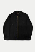 - The Black Weaved Mechanics Jacket for men blends timeless French workwear style with practical design, featuring two external pockets and a secure zip closure.