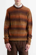 - This crew-neck sweater features a unique bouclé texture crafted from printed yarns that blend into a warm gradient of tan tones.