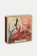 - Archivist’s signature square matchbox featuring a colourful graphic of the Great Barrier Reef, including sealife and plants.