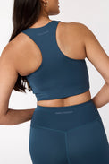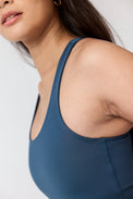 - With a scoop neck and form-hugging design, this bra combines eco-friendly materials with performance and style.