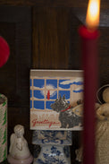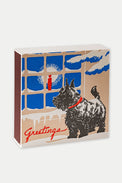 - Archivist’s signature square matchbox featuring a Scotty dog out in the snow looking through the window at a burning candle.